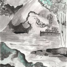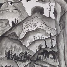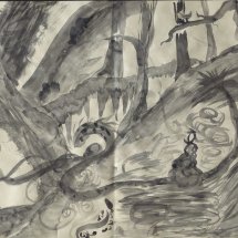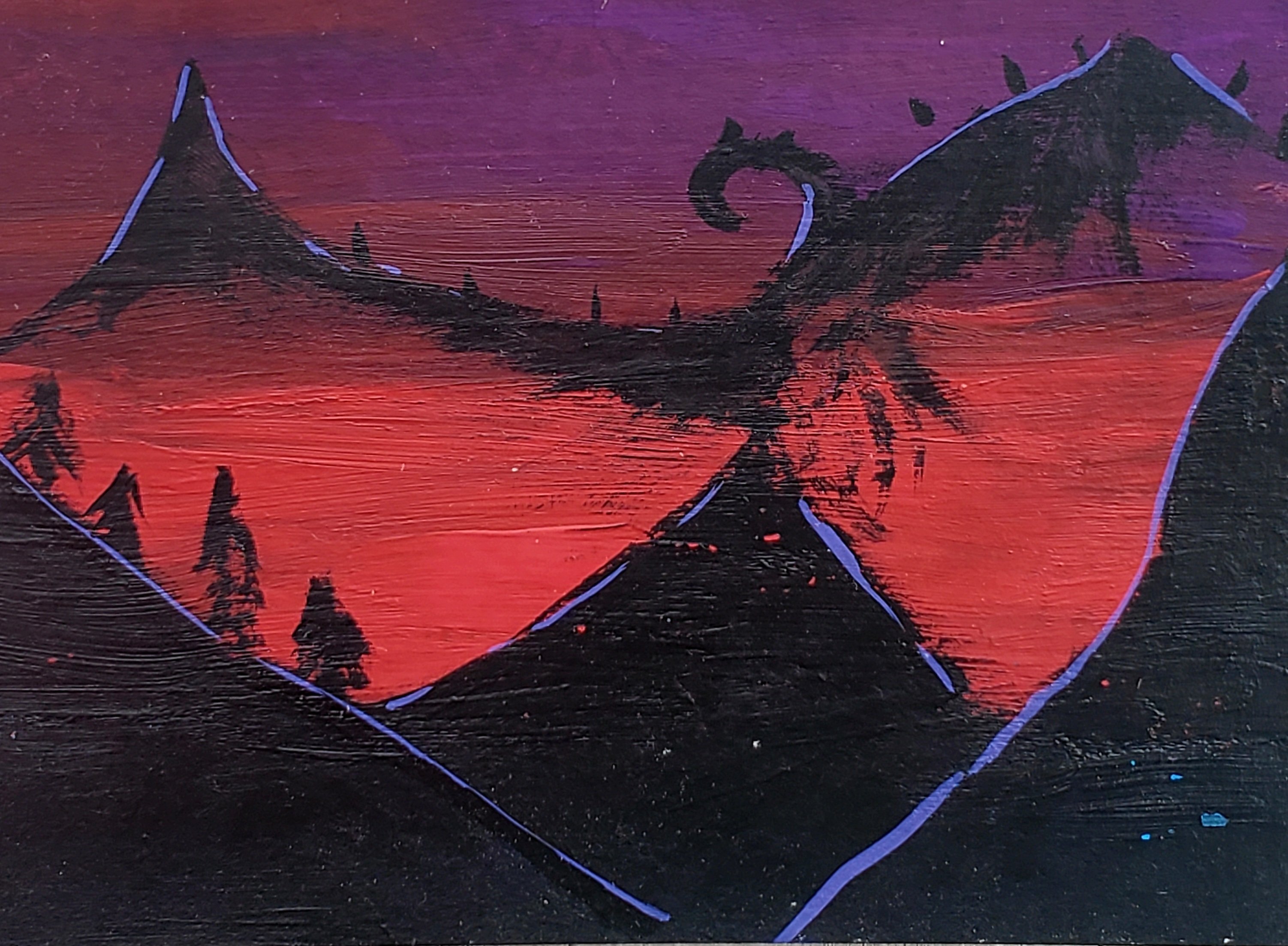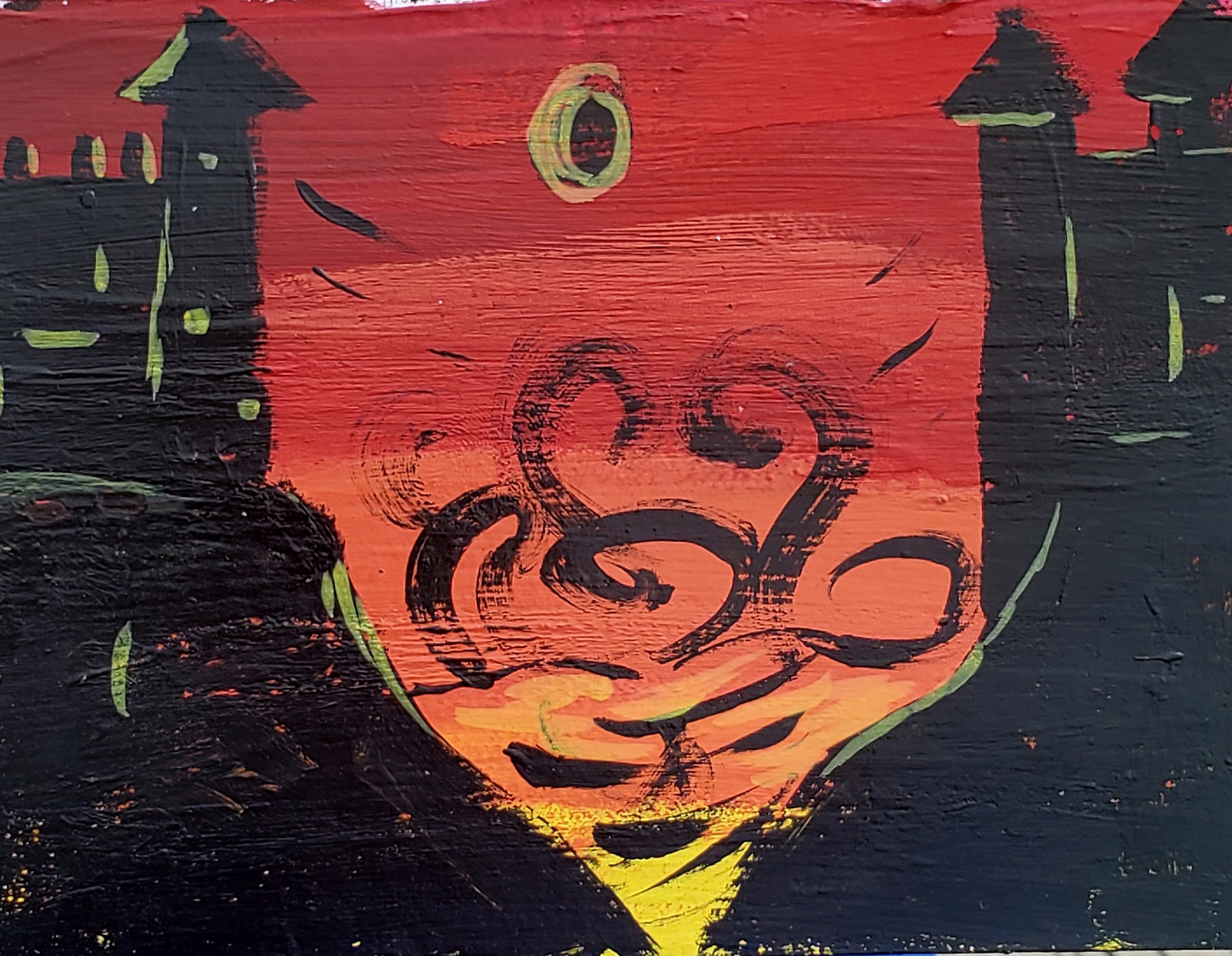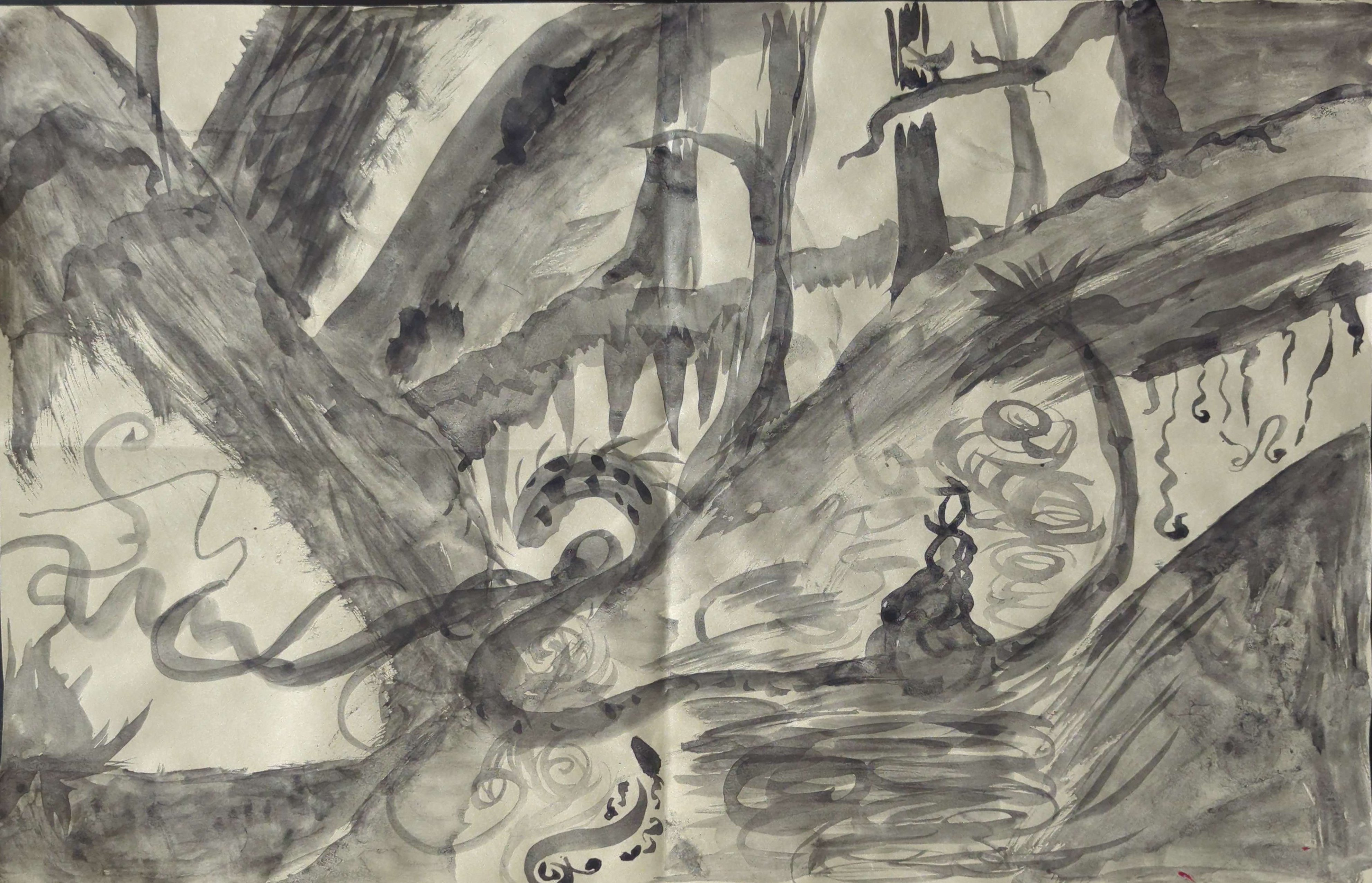 calligraphy ink and Acrylic paint on watercolor paper. Made in 2023..