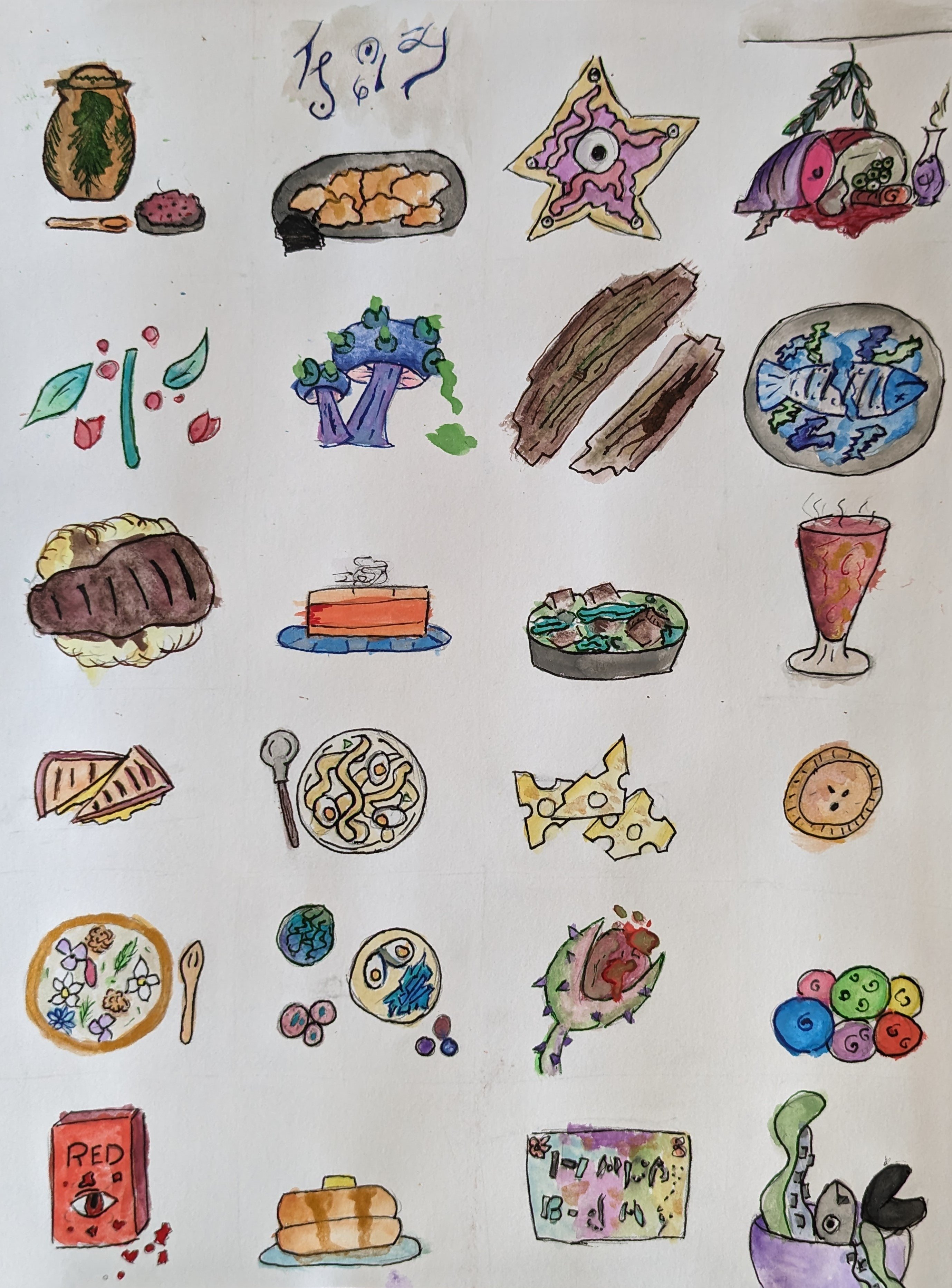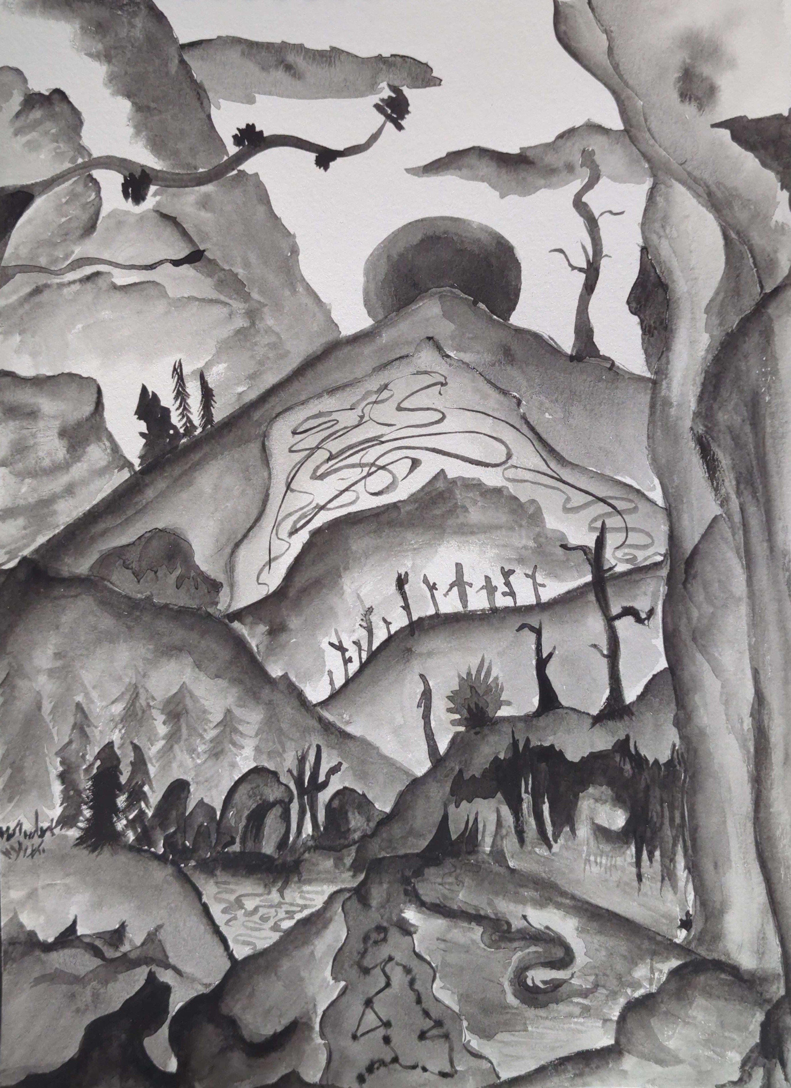 Watercolor and ink on watercolor paper. Made in 2023. Designed and created for a fantasy worldbuilding project that I am still working on..