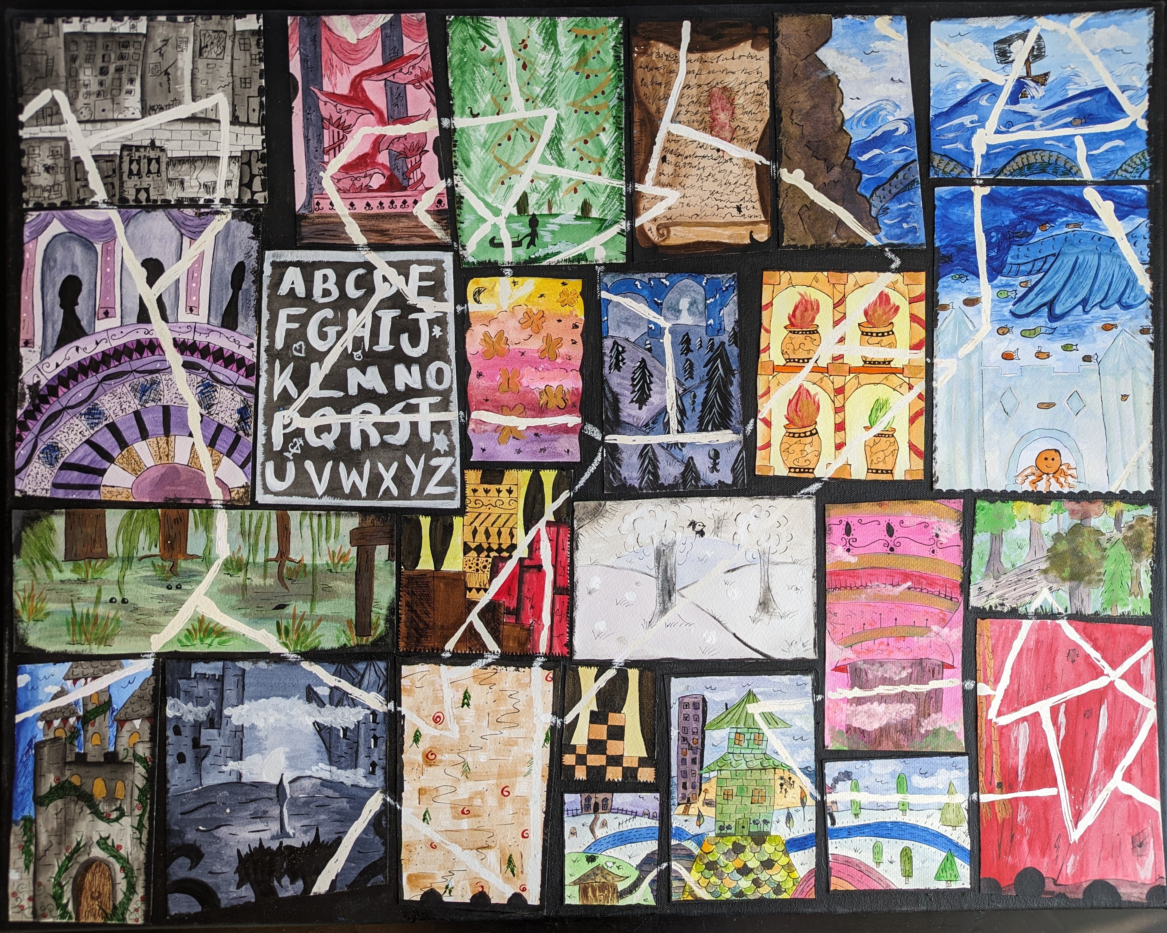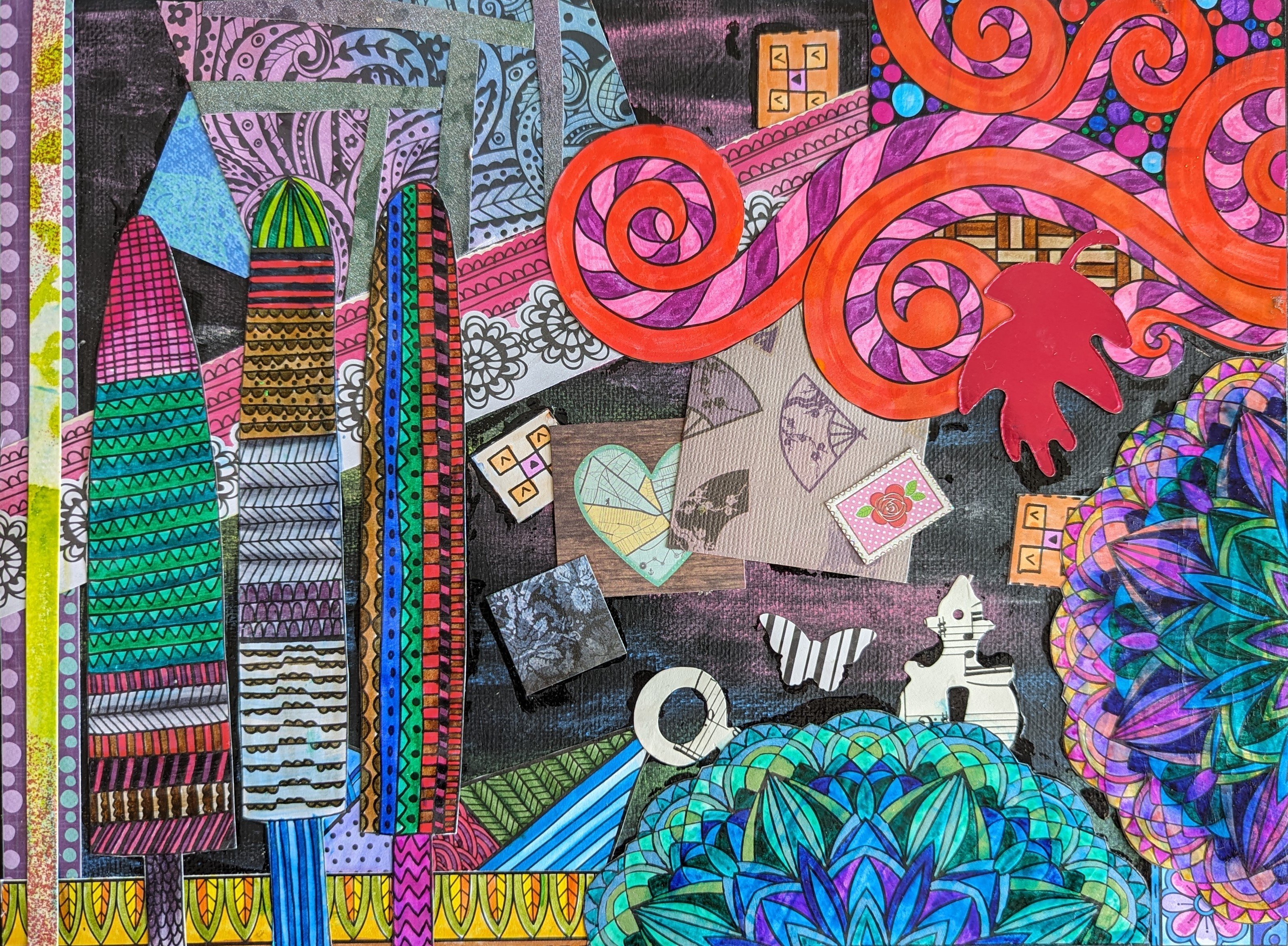 Chalk, Misc Paper Collage on Canvas. Made in 2023..