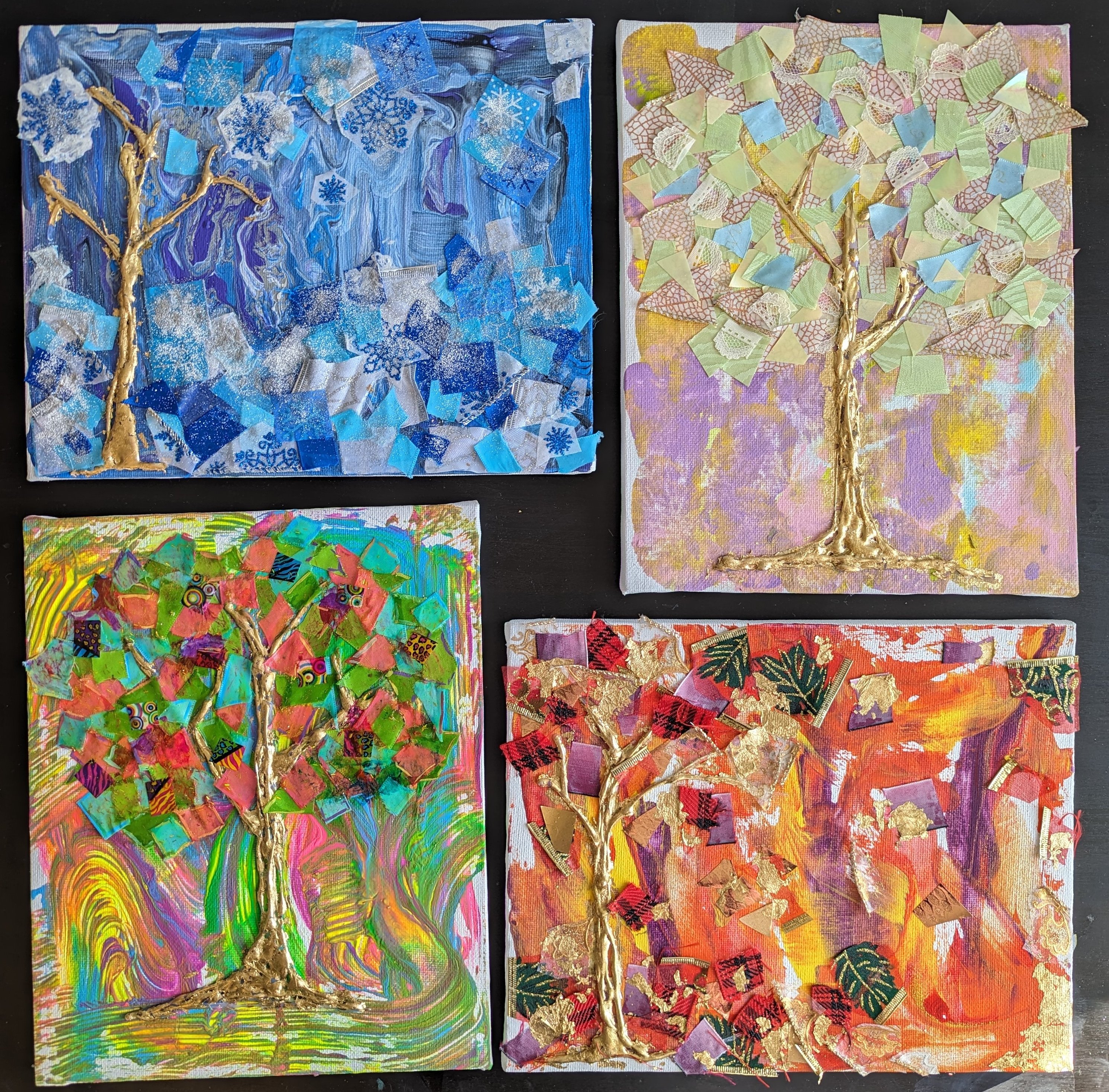 Acrylic & Ribbons & gold leaf on Canvas. Made in 2023..