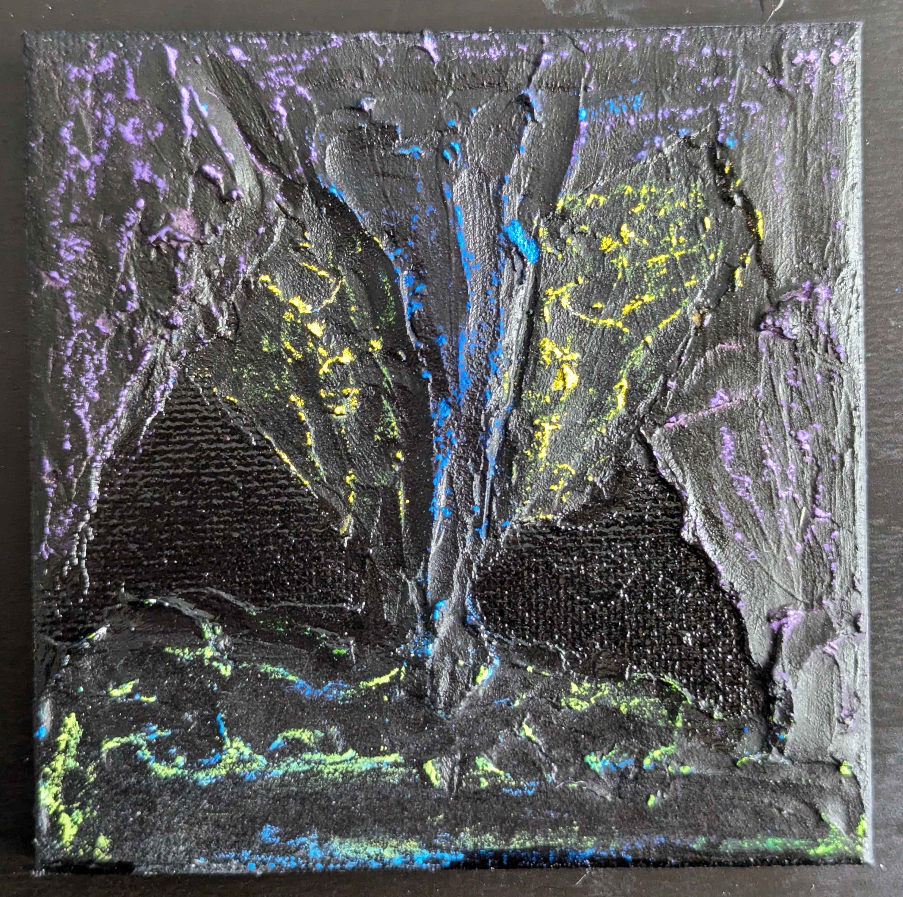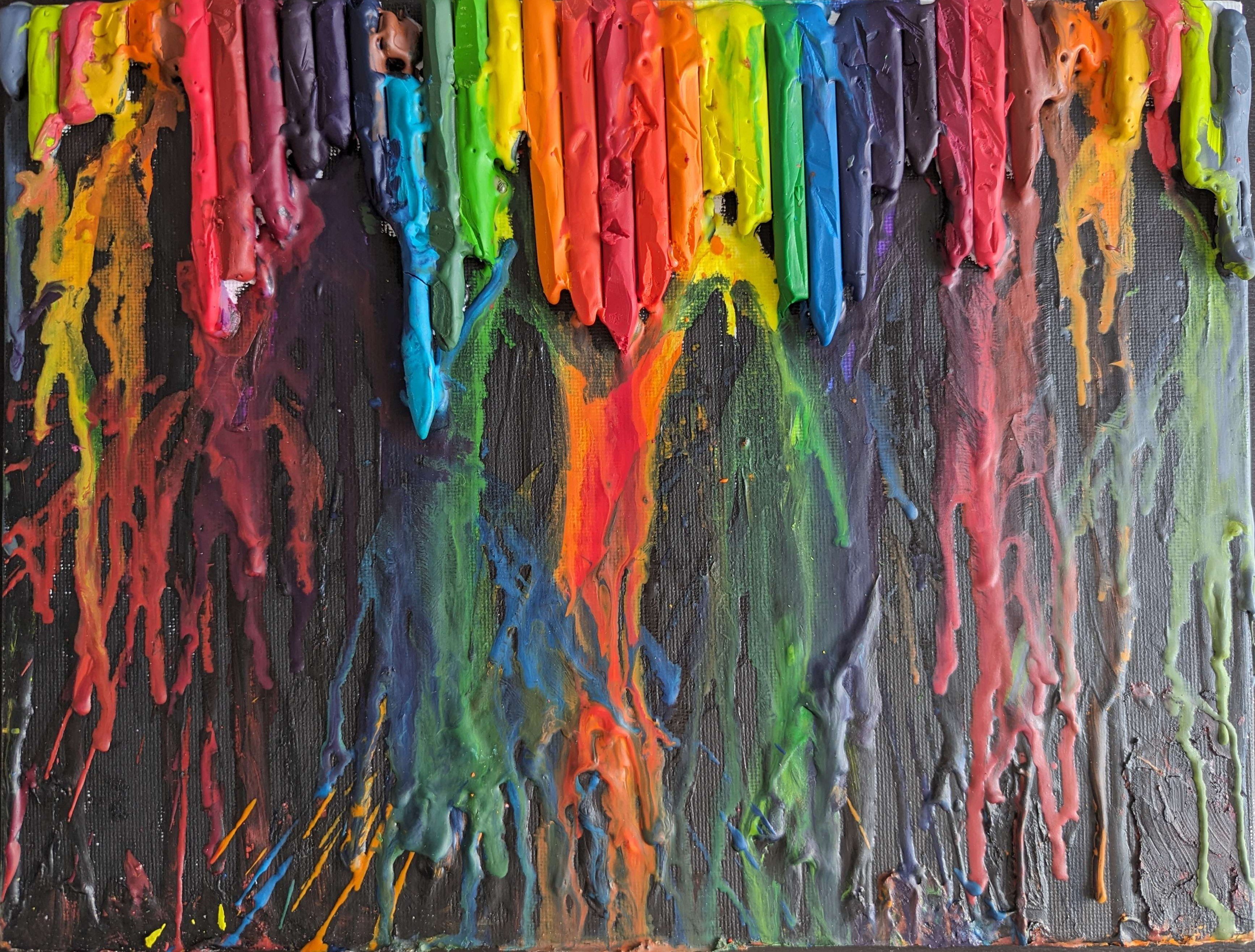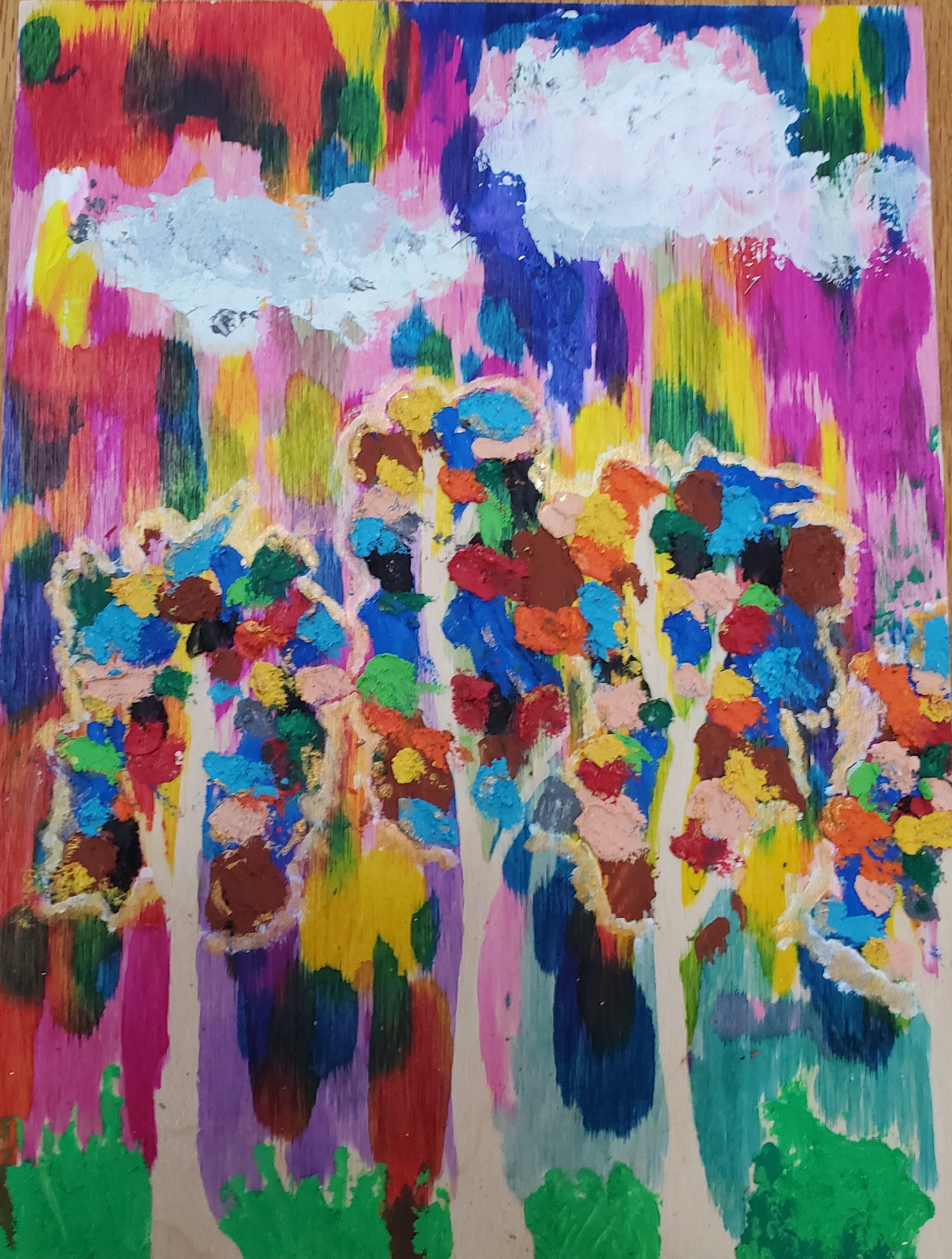 Alcohol, acrylic paint and oil pastel on birch board. This Was Made in 2023..