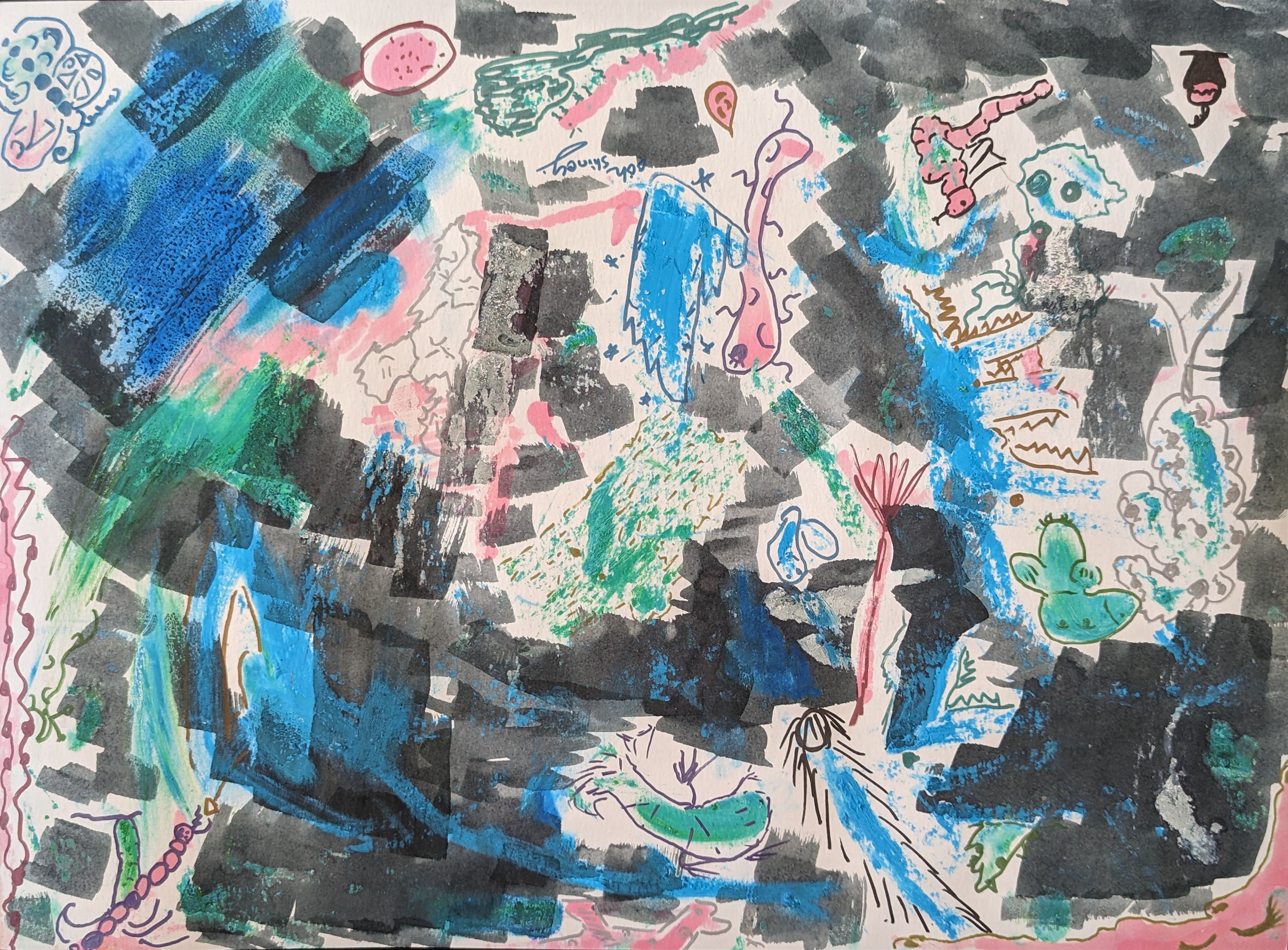 Oil Pastel & Marker Ink on Watercolor Paper. Made in 2023..