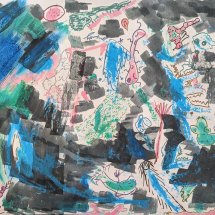 Calligraphy ink & Marker On canvas & watercolor paper. Made in 2023..