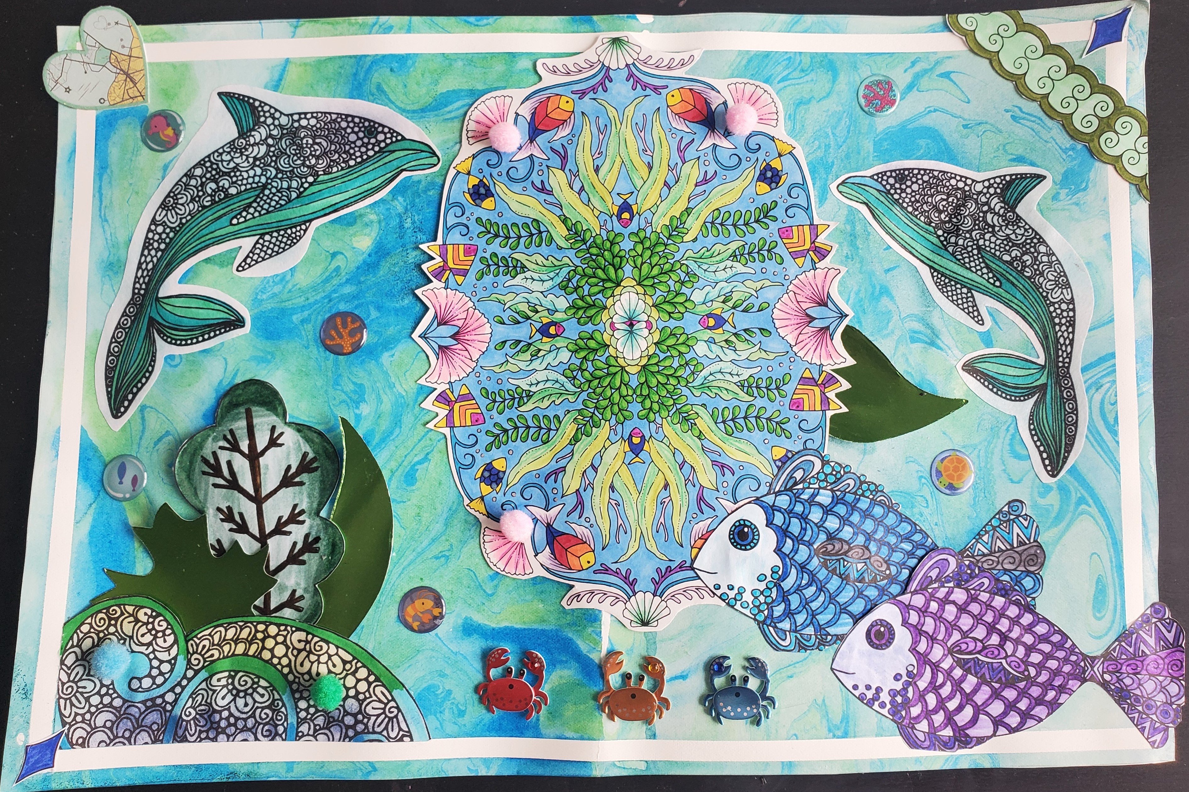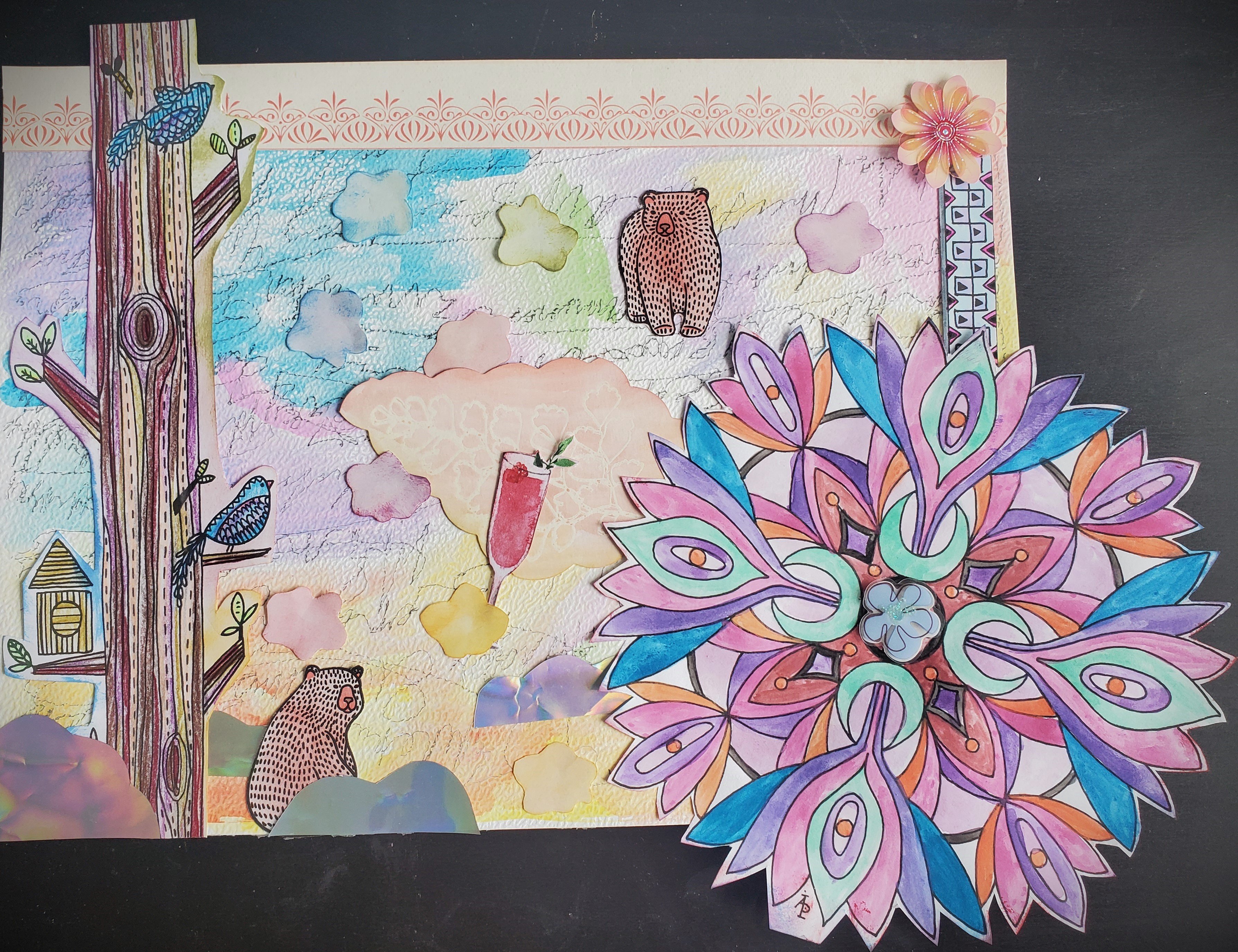 Coloring Book Collage on Watercolor Paper. Made in 2024..