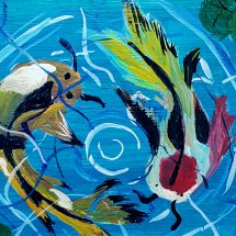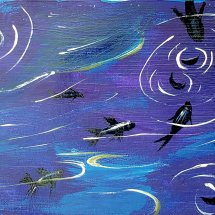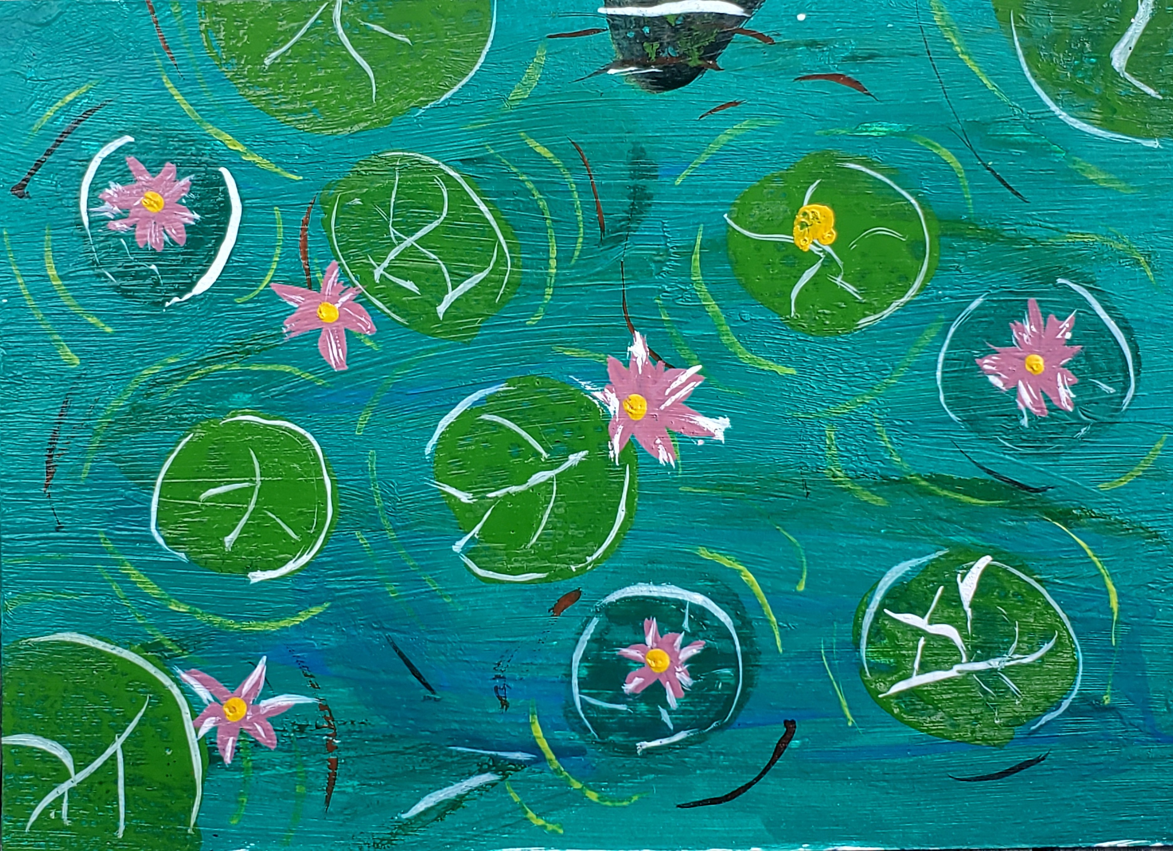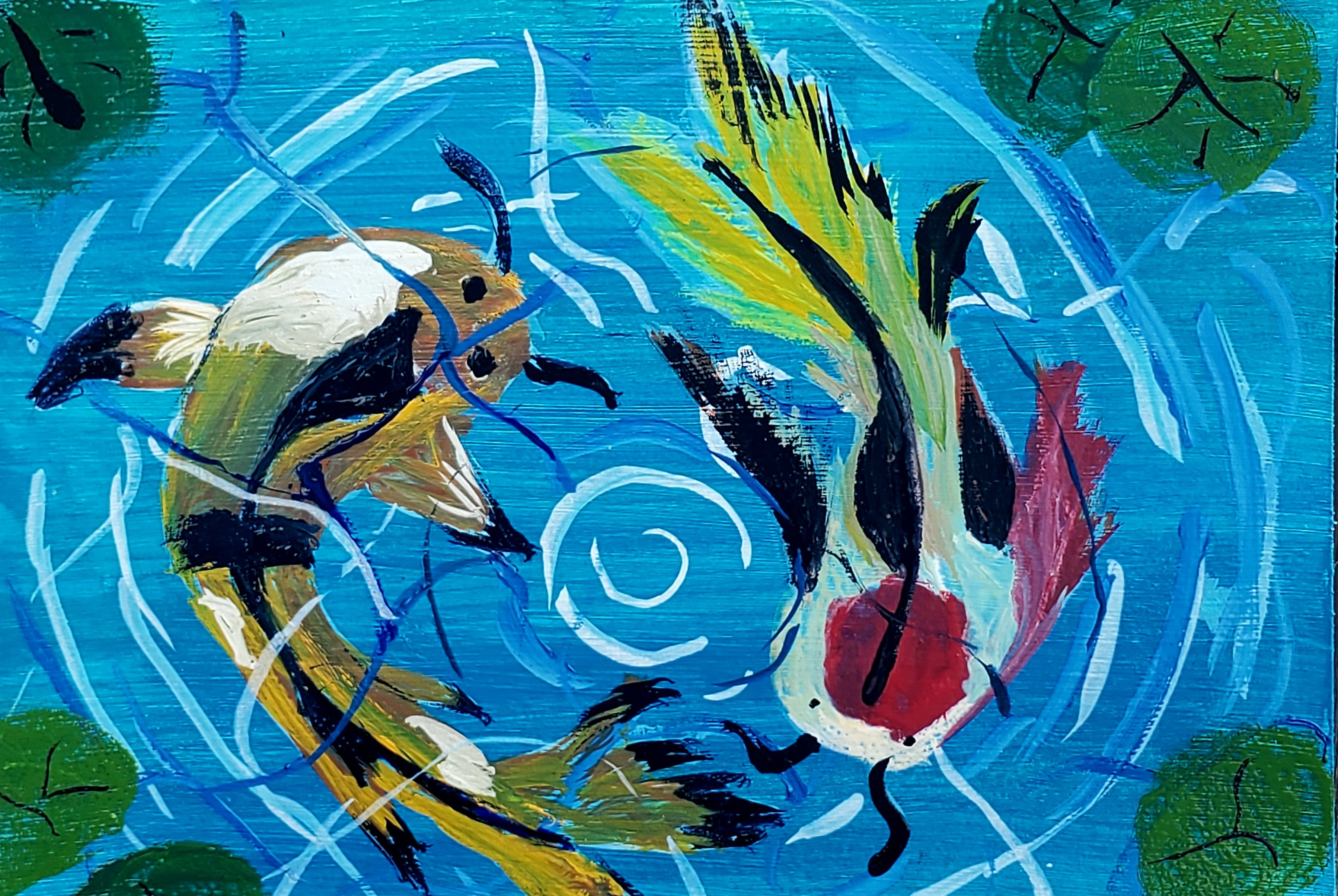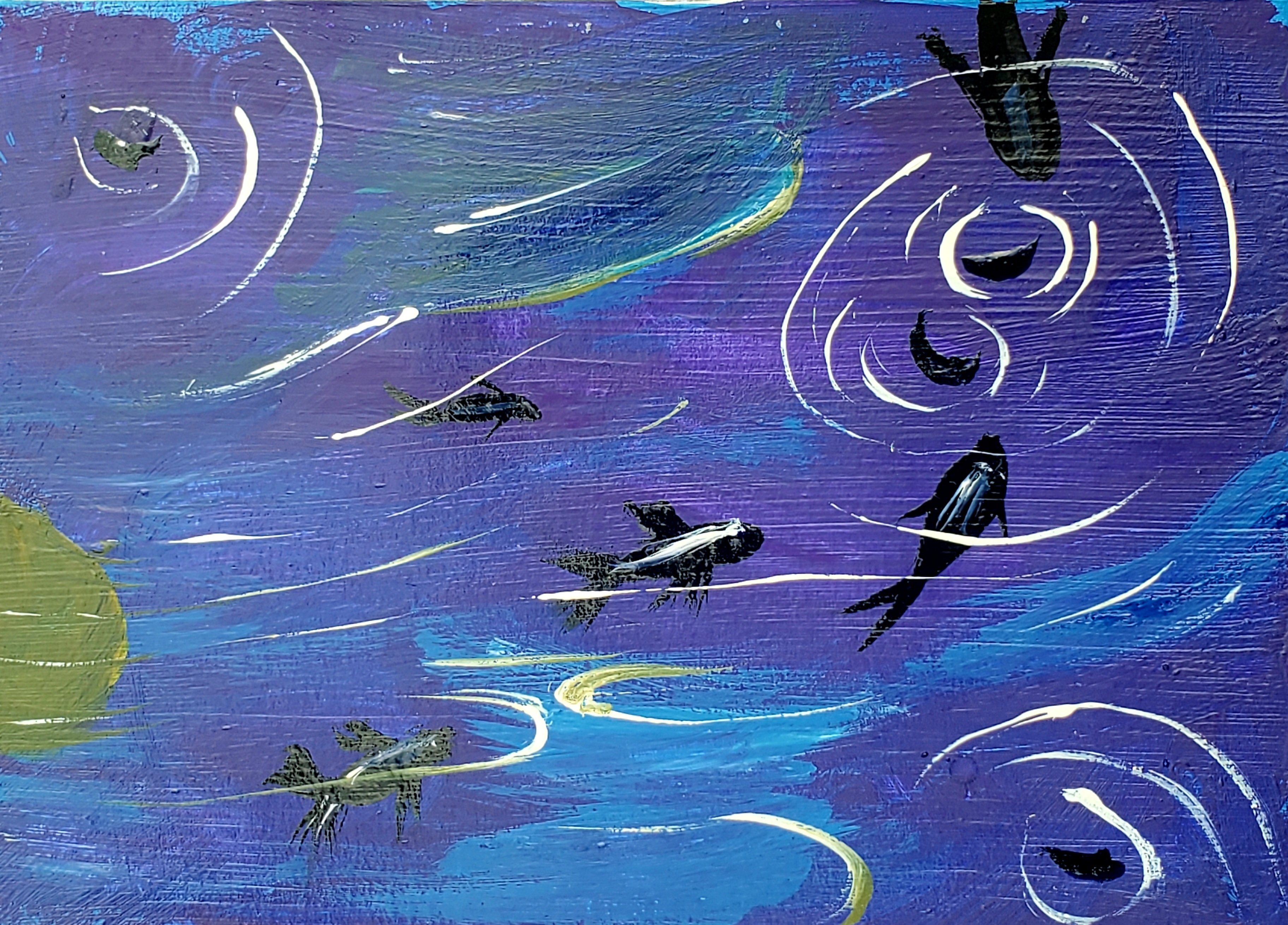 calligraphy ink and Acrylic paint on watercolor paper. Made in 2023..